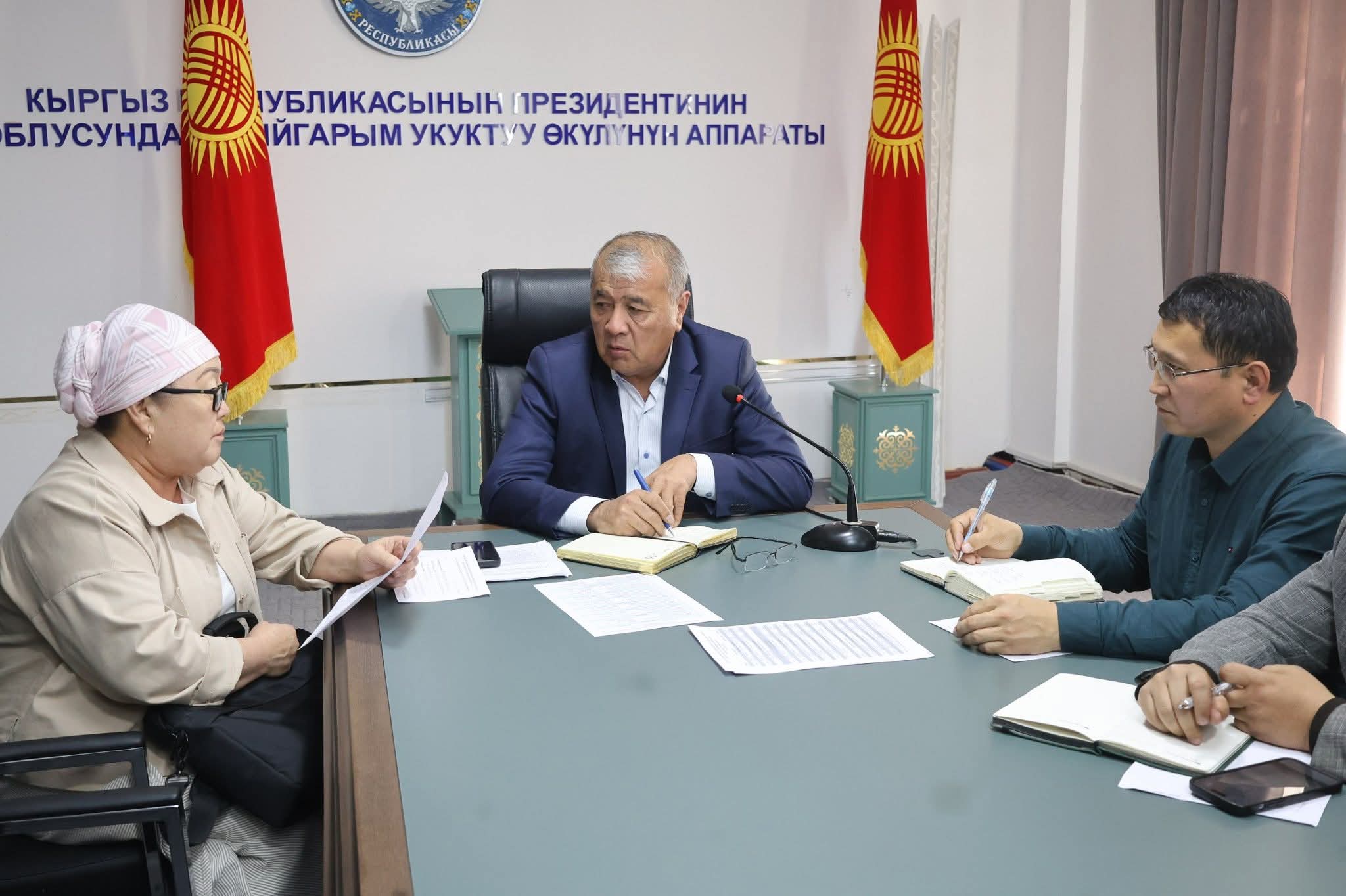 Маалымат үчүн: жарандарды жеке маселелери боюнча кабыл алуу ар жуманын шейшемби күнү саат 14:00дө өткөрүлөт.