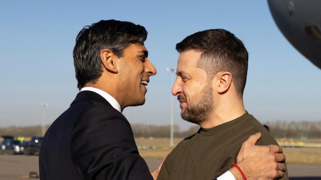 Зеленский 24-февралда Орусия-Украина согушу башталгандан бери биринчи жолу Британияга барды. Украин лидери биринчи чет өлкөгө сапарын 2022-жылдын декабрында АКШга жасаган.