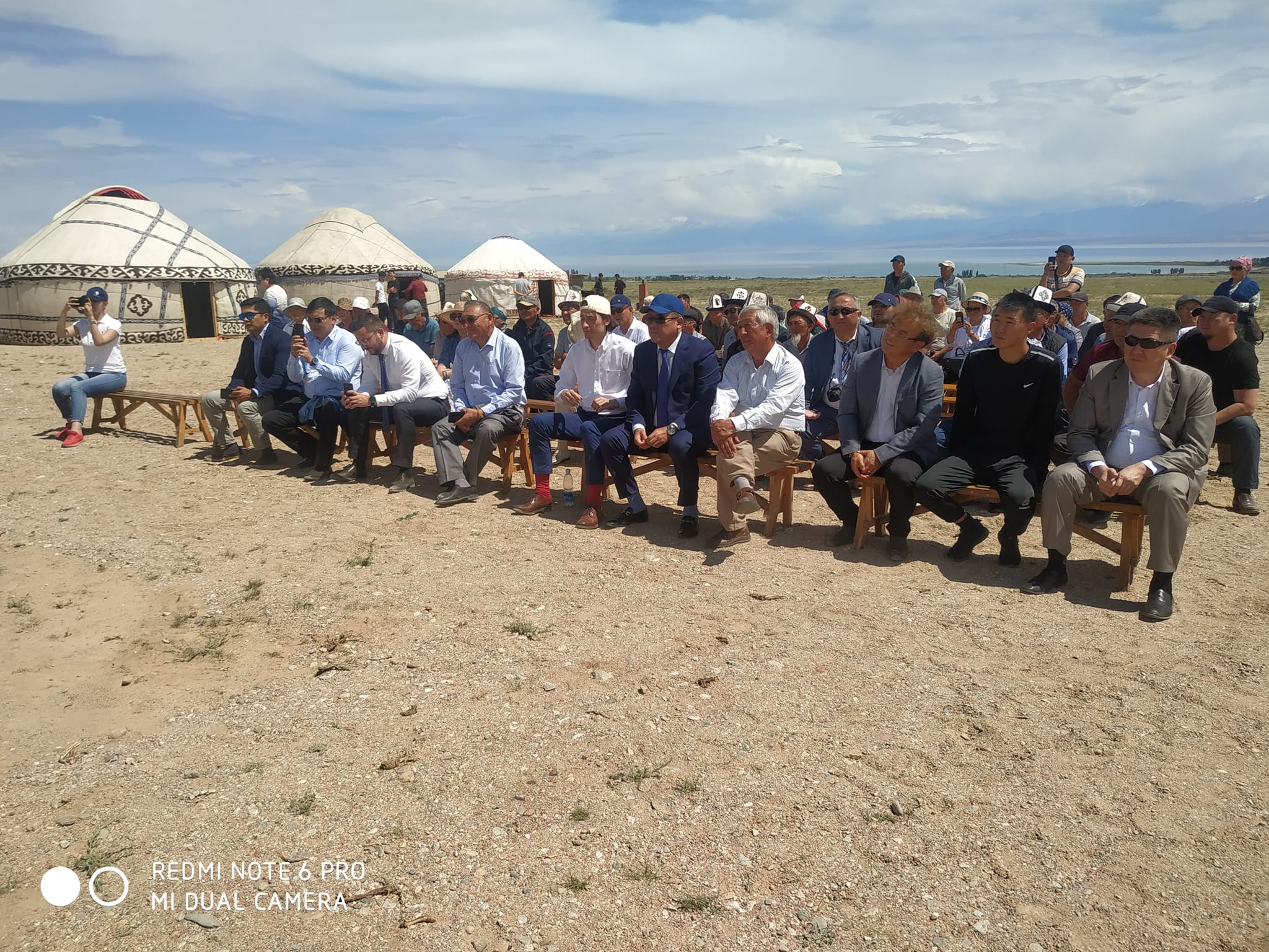 Казакстандын Кыргызстандагы элчиси, россиялык Хевел компаниясынын өкүлдөрү жана жергиликтүү эл катышып жатат», - деп жазган ал.
