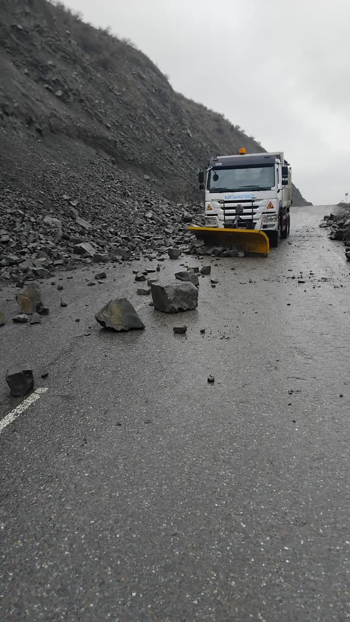 № 18 Жол тейлөө ишканасы тарабынан кулаган таштар тез арада тазаланып, каттам камсыздалды. Учурда жол ачык. Каттам бар.