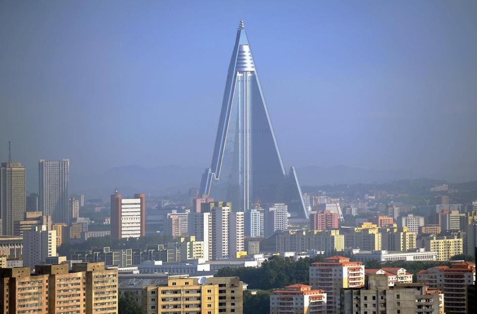 Пхеньяндын так жүрөгүндө асманды жараткан зор пирамида сымал имарат турат. Бул — «Рюгён» мейманканасы, Түндүк Кореянын эң бийик жана эң сырдуу курулушу.