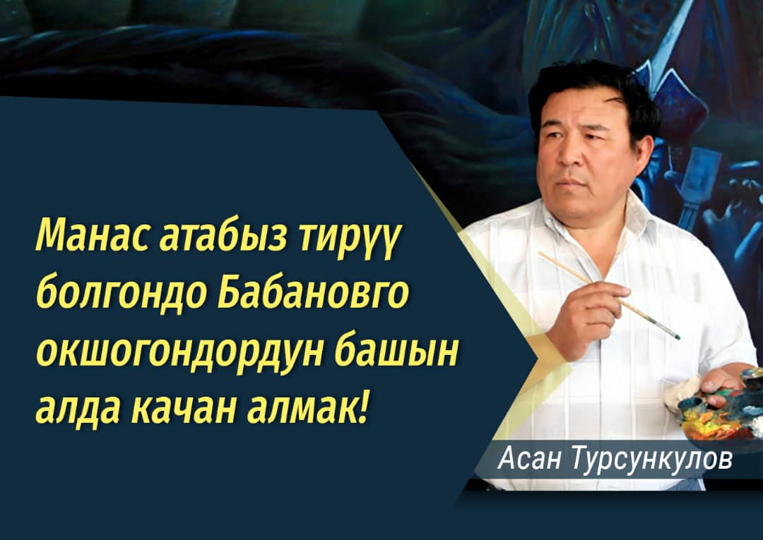Эй, айланайын Таластык туугандар! Кай жерде болбосун биз Манастын накта тукумубуз деп кыйкырасыңар. Эгер Манас атабыз тирүү болгондо Бабановго окшогондордун башын алда качан алмак! Силерде бир кыпындай намыс барбы же жокпу? Кыргызстанды кантип өнүктүрөбүз? Андан көрө Бабанов деген балаңардан сурагылачы? Мамлекетке 730 миллион сом салык эмнеге төкпөдүң? Эмне үчүн Россияга 380 миллион долларга цемент завод курдуң? Ошол акчага кыргыз жерине бир завод курсаң болбойт беле? Бийликте жүрүп кантип акча жыйнадың? Жер-Үй алтын кенин кимге, канчага саттың? - деп сурабайсыңарбы? Таластыктар..! Намыс деген кайда? Ай, атаңдын көрү, Таластыктарда намыс калбаса шорубуз куруган экен? Уят!