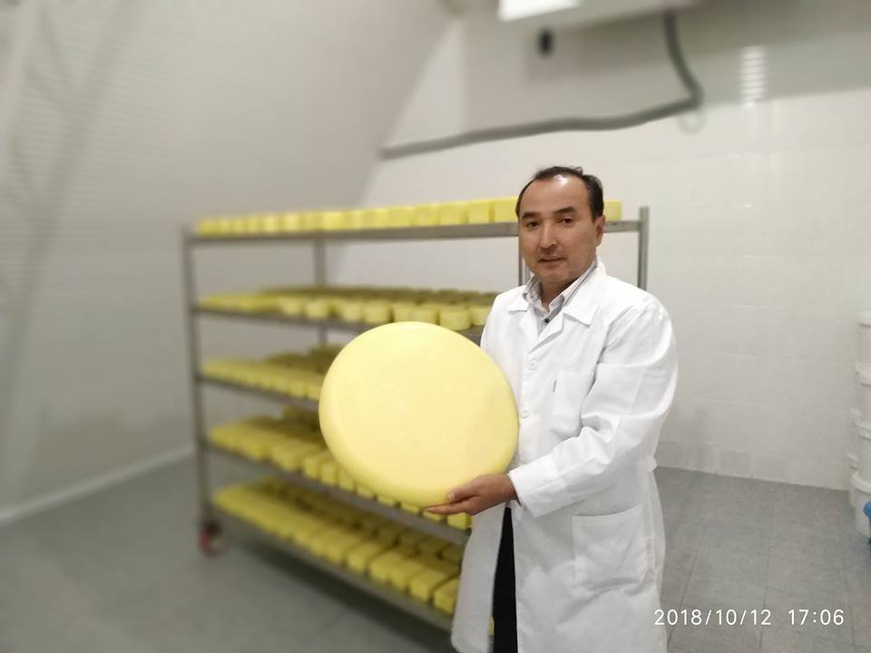 --2500-2700 метр деңиз деңгээлинен бийик турган жерде Алайкуу өрөөнүндө сүттү кабыл алуу, кайра иштетүүчү борбор ачканбыз. Курутту өзүбүз сүзмөдөн жасап жатканбыз. Бирок сүзмөлөрдүн биринин тузу көп же тескерисинче аз болуп калат экен. Андыктан өзүбүз сүттү кабыл алып, сүзмө жасоого өттүк. Ошол жерден “эмнеге биз сүттөн сүзмө эле жасайбыз. Андан көрє кыргыздын быштак, эжигейин чыгара албайбыз”-деп идея келип жабдууларын издей баштадык. Кыргыздын быштак, эжигейин жасай турган жабдуу дүйнөдө жасалбайт экен. Андыктан эң жакыны сыр жасаган жабдууну алып келип пайдаландык. Сырдын технологиясын азыр үйрөнүп алсак 2019-жылдан баштап, кыргыздын нукура азыктарын чыгара баштайбыз.