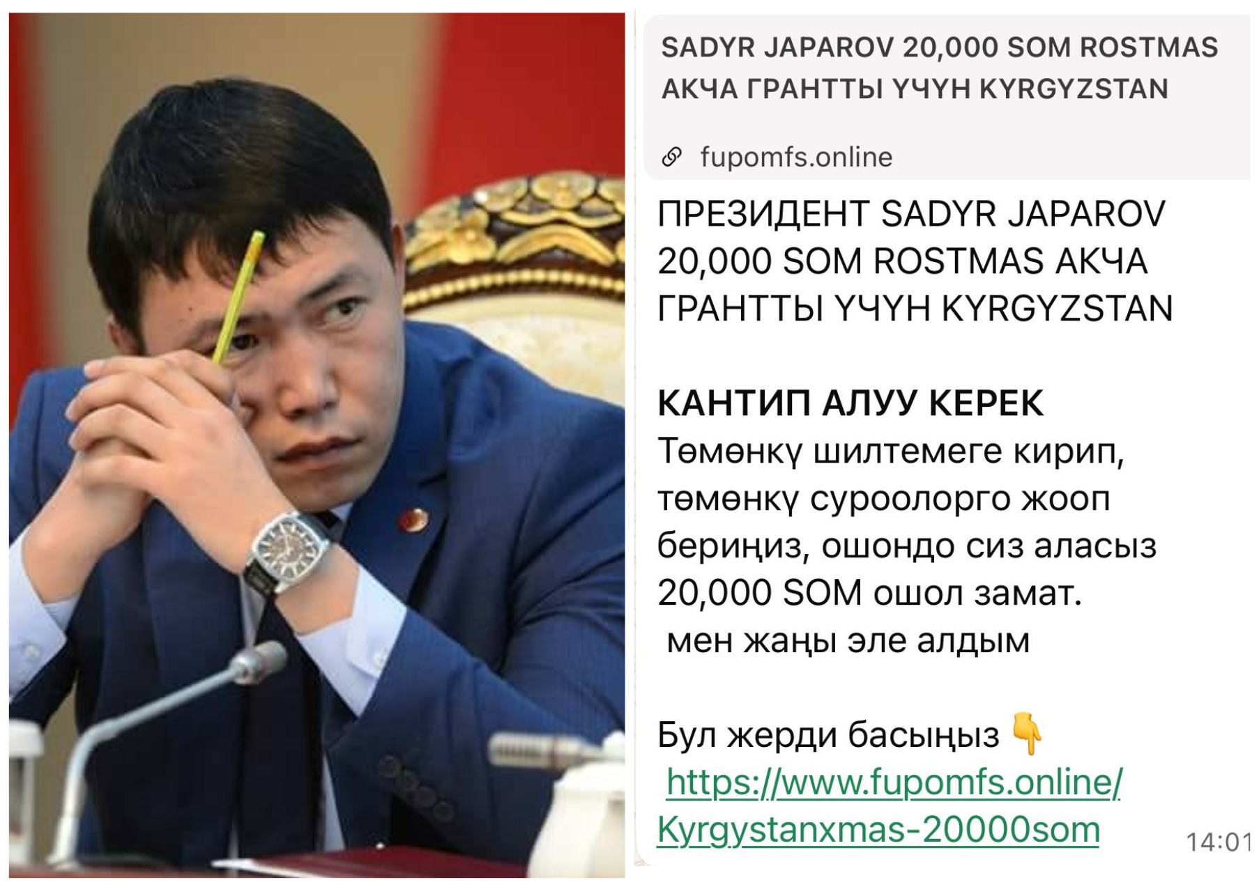 Анын айтымында, Мамлекет башчысы эч качан мындай билдирүүлөрдү жайылтпайт жана шектүү интернет-акциялар аркылуу акча таратпайт. Бул көрүнүш кадимки эле алдамчылык экендиги расмий түрдө белгиленет.