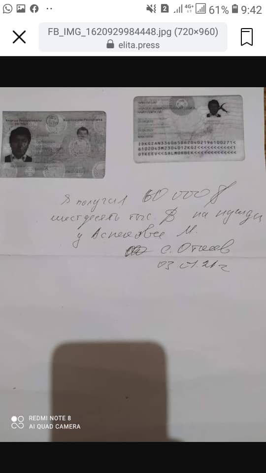 Аспеков Чүй облусу боюнча штаб башчыларына акча бергенде алардан тил кат жаздырып алган.