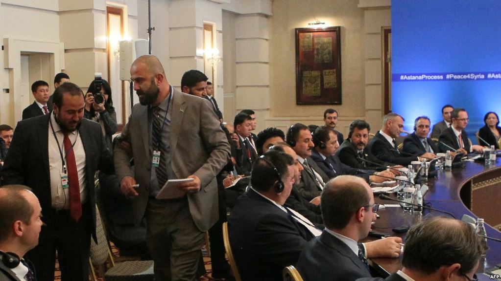4-майда Астанада Орусия, Түркия, Иран өкүлдөрү Сириянын согуш жүргөн төрт аймагында коопсуз зона түзүү боюнча меморандумга кол коюшкан. Сирия оппозициясынын бир бөлүгү Тегерандын бул документке кол коюшуна макул болбой, каршылык иретинде сүйлөшүүлөрдөн чыгып кетишкен.