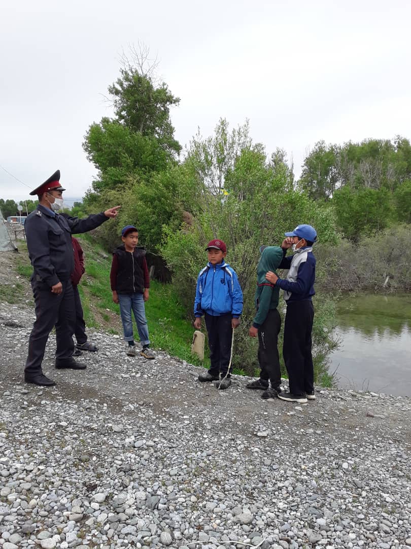 Ошондой эле жашы жете электердин иштери боюнча инспекторлору тарабынан жаш өспүрүмдөрдүн коопсуздугуна коркунуч келтирген терең көлмөлөргө, агымы күчтүү каналдарга эскертүүчү белгилери бар жерлерге сууга түшүүгө болбой тургандыгы боюнча түшүндүрүү иштери жүргүзүлүүдө", - деп айтылат билдирүүдө.