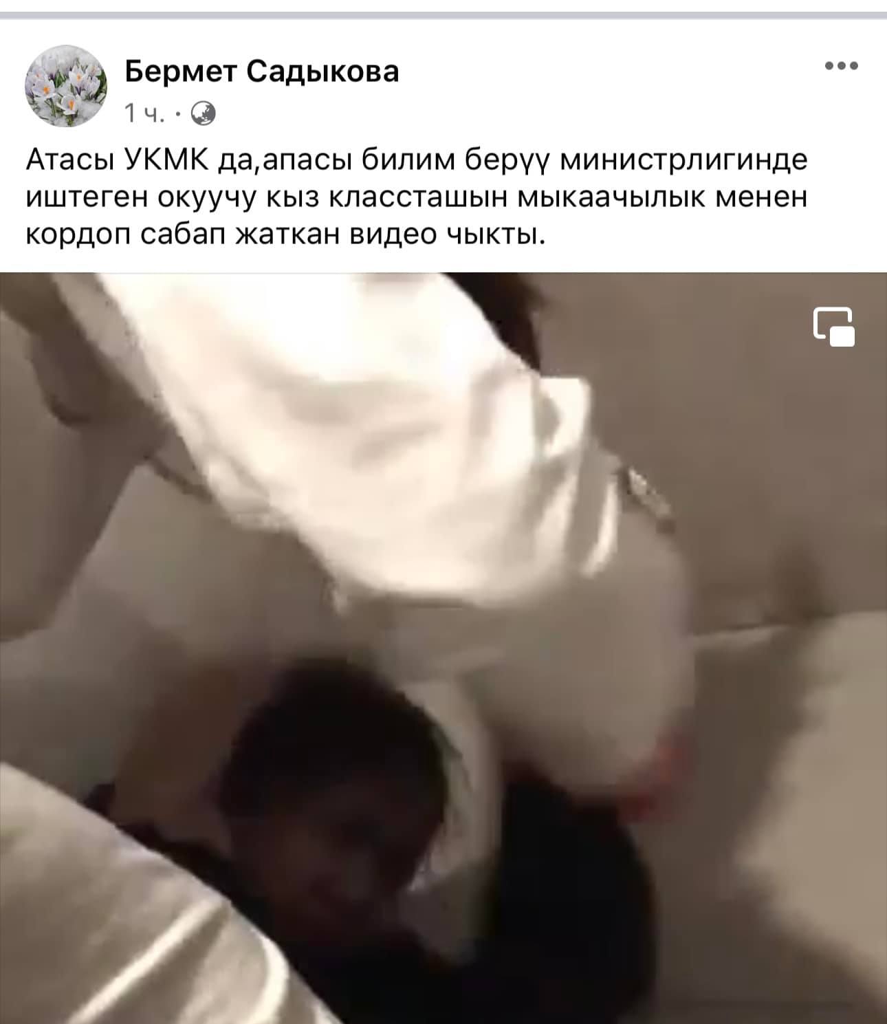 Интернет желесинде "Атасы УКМКда, апасы Билим берүү министрлигинде иштеген окуучу кыз классташын мыкаачылык менен кордоп, сабап жаткан видео чыкты" аталыштагы маалымат Кыргызстандын аймагында болгон эмес. Бул тууралуу Ички иштер министрлиги билдирет.