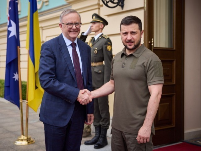 “Менин Киевге болгон сапарым, башка дүйнөлүк лидерлердин акыркы сапарлары сыяктуу эле, Австралия сыяктуу демократиялык өлкөлөр оор күндөрдө украин эли менен жанаша турганынын айкын көрсөткүчү”, - дейт Албаниз.