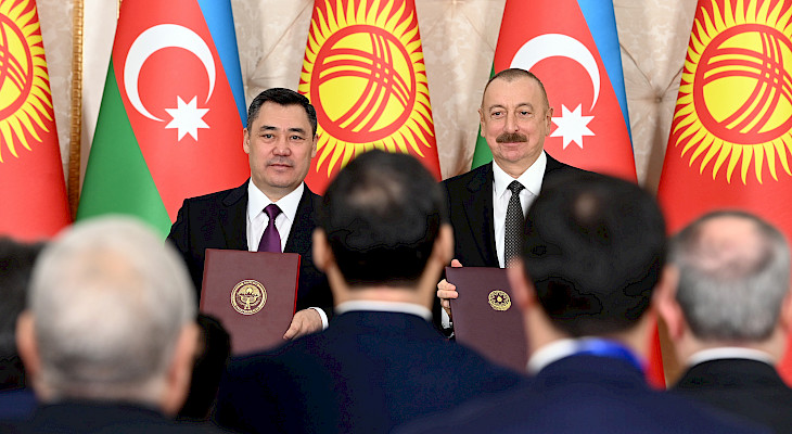 Садыр Жапаров менен Ильхам Алиев Кыргыз Республикасы менен Азербайжан Республикасынын ортосундагы стратегиялык өнөктөштүк жөнүндө Декларацияга кол коюшту.