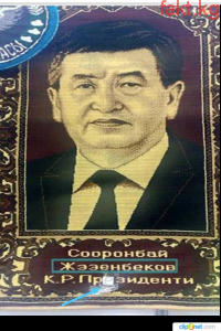 Президентибиз Сооронбай Жээнбековдун сүрөтү кол өнөрчүлөр тарабынан кездемеге түшүрүлгөн, атайын дубалга илип алганга ылайыкталып жасалган, бирок фамилиядагы ашык болуп калган "Е" тамгасы учурда көңүл чордонунда. Ушунча көз майын кетирген жана күч, эмгек, убакыт кетирип аракет кылган экен, жазуусунан адашып ката кетирип алганбы бир эле тамгадан ката кетирген экен. Сүрөттө “Жээенбеков” деп жазылып турат. Кимдин идеясы болсо да, жазуусун кол өнөрчүгө жазып берип койсо болмок экен. Канча эмгектин талап кылган "шедевр" текке кетип, баасы кетип отурат.