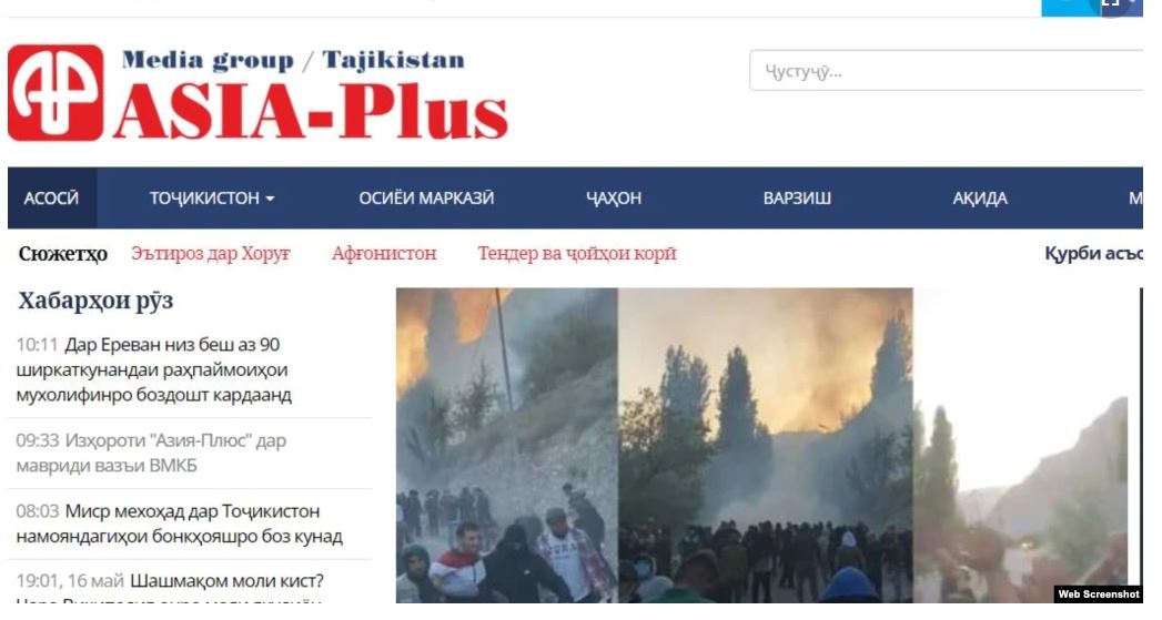 Тажикстандагы "Азия-Плюс" агенттиги бийликтин кысымына байланыштуу Тоолуу-Бадахшан автоном облусундагы соңку окуяларды чагылдыруудан карманууга аргасыз болгонун билдирди. 17-майда жарыяланган билдирүүдө болбосо сайттын жабылып калуу коркунучу бар экени айтылган.