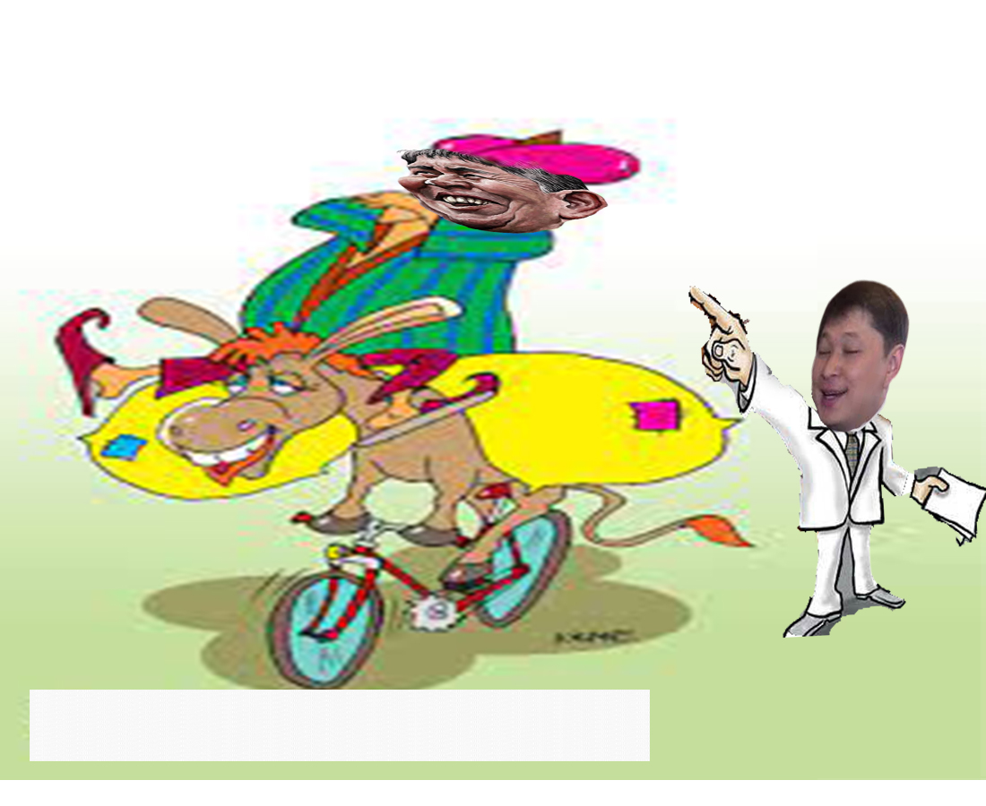 Атамбаев эшек минип алып балашкасы Сапар Исаковду жандатып ээрчитип алат. Эл күбүрөйт: «Карасаң уялбай балтыйып эшек минип алыптыр. Тирмийген балашкасы жөө жүрөт»- деп. АША балашкасын артына учкаштырып алат. Эл: «Карасаңар мантайышып балашкасы экөө эшекти минип алыптыр, байкуш эшекке эле убал болду» дешет. АША балашкасын эшекке отургузуп, өзү жөө басат. Эл: «Карасаң 60тан эбак ашкан чалды жөө бастырып, былчыйып балашкасы минип алыптыр» деп. Балашкасы эшектен түшүп, экөө жөө басып, эшекти жетелеп алышат: «Карасаң дандыйган эшеги турса экөө жөө басып алышыптыр» дешет.