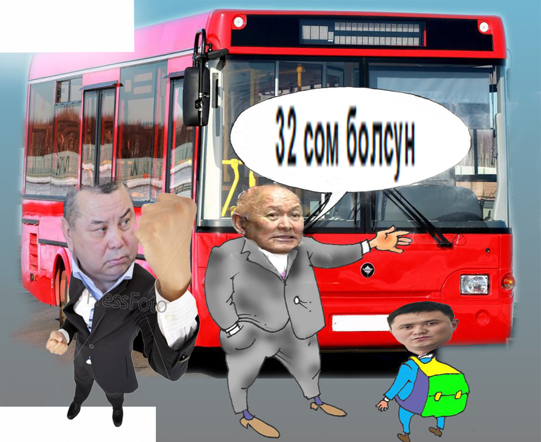 "Бензиндин, солярканын баасы өстү, айлыктар көбөйдү" - деген жүйөнү негиз кылып жатышат. Көп болсо бир элүү тыйын кошо туруш керек да, жаны чыгып баратса. Элди да ойлош керек да. Бишкекте мамлекеттик кызматкерлердин эле айлыгы көтөрүлдү. Калганы ошол эле бойдон. Баалар болсо өсүп атат. Маршрутка айдагандар унчуккан жок, мэрия өзү эле демилге көтөрүүдө. Кредиттерди жаба албай жатса, анын башка жолдорун издеш керек. Бош жаткан жерлерди бергиле бизнеске. Катып, пара алып жүргөн жерлерди ачыкка чыгарып, ошолордун ижара акысын көбөйткүлө. Болбойт да мындай. Башка булактарын издеш керек!