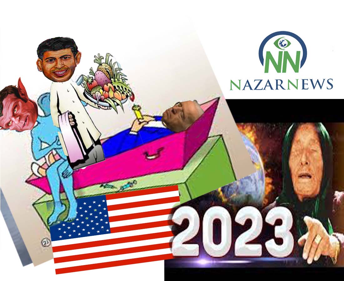 Улуу Британия премьери Сунактын биринчи жылы жакшы болбосун Ванга алдын-ала айткан. 2023-жылы Ванганын айтымында Европаны алоонгон согуш бороону каптап, согуш апогейине жетет. Бул согуш Улуу Британияны башкарып жаткан кара адамды жалмап кетиши мүмкүн. Кошмо Штаттарынын президенти Джо Байден ойду –тоону сүйлөп жүрүп, кызматынан кур жалак калат деп да айтып кеткен. Чындыгы республикачылар ноябрдагы өткөн шайлоодо Байденди ыйлатып кетишти. Ошол эле Байден катуу ооруга чалдыгат деп айтып кеткени да бар, балким 80 жаштагы Байдендин ден соолугу начардыр. 2023 - жыл АКШ президенти Джо Байденге жамандык алып келет. Ванганын айтуусунда «46-чы Кошмо Штаттар президенти табышмактуу дарт менен ооруп калат, ушунун кесепетинен анын кулагы укпай калат жана мээсине доо кетет». Аман эле болсун, көрө жатарбыз. Анан да адамзат рактын үстүнөн жеңишке жетишет деген. Анын айтымында темир чынжыр менен бул оору бекем таңылат деп, муну күтсө болот.