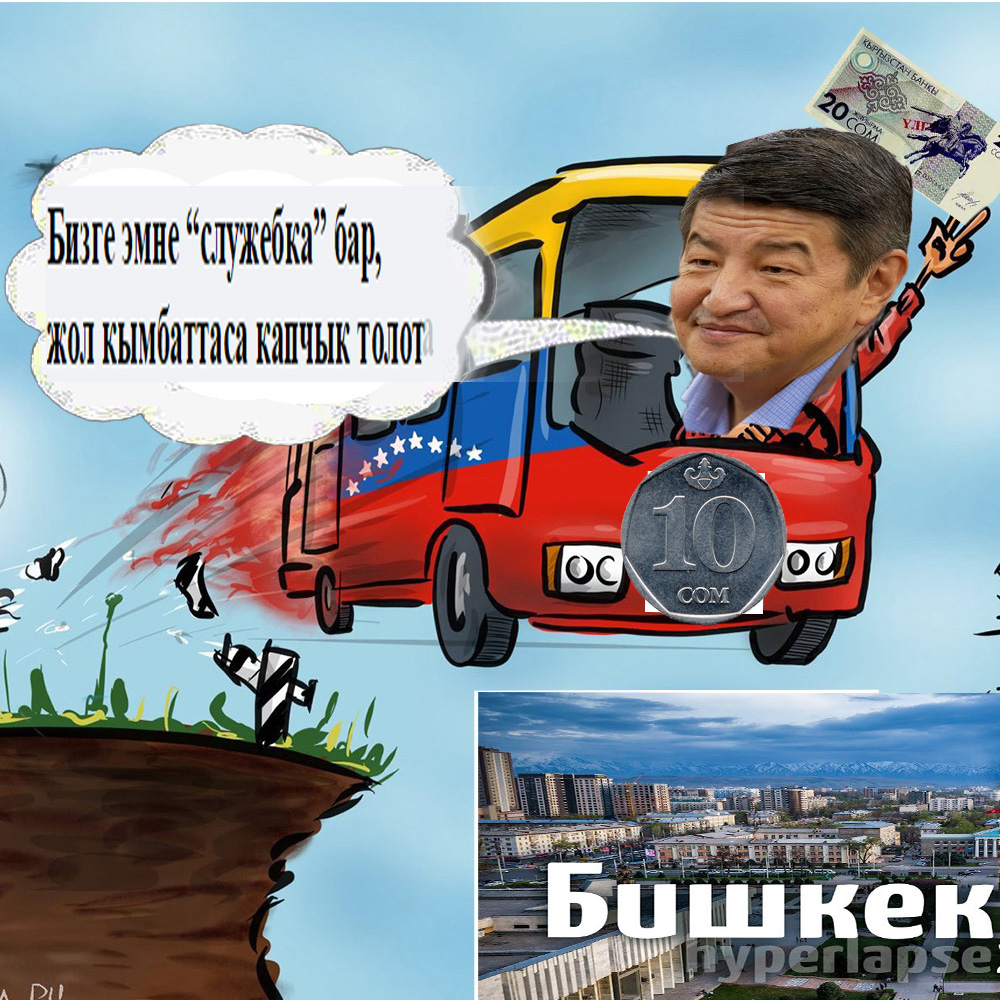 Жол кирени көтөргөндөн мурун, бири-бирин кайталаган маршруттардын санын кыскартыш керек. Бийлик айдоочуларга убактылуу азуусун көрсөтүп койду. Акыркы мезгилде «Кумтөр» маселеси чиедей чырмалышып, улам бир алкы-бузуктун жүзү ачылып жатканда, туурадан айдоочуларга бүлүк салышып, жол кирени 15- сомго көтөрүшүп, элдин капчыгына кол салгысы келгендер чыгышкан. Учурда мэрге канат бүтүп Жамалбек Ырсалиев деген жаш канаттуу болду. Мэриянын оюу боюнча Бишкек шаарында борбор калаанын символу боло турган «Ала-Тоо Тауэр» комплексин куруу пландалууда. Анын айтымында, комплексте соода түйүндөрү, мейманканалар болот.