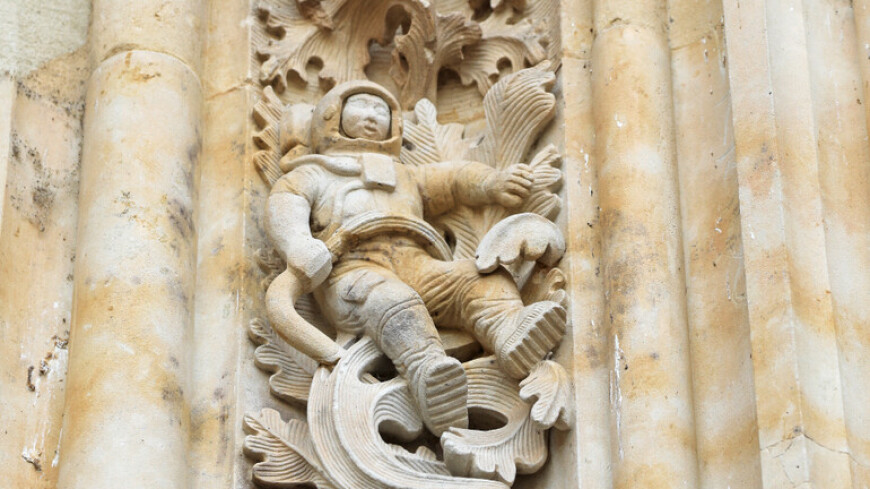 Испаниянын Саламанка шаарындагы чиркөөнүн дубалында скафандр кийген белгисиз адамдын фигурасы чегилген. Көптөгөн туристтер көп жылдар бою, алар ошол кезде астронавттардын кандай экенин кантип билишкен деп таң калып келишкен.