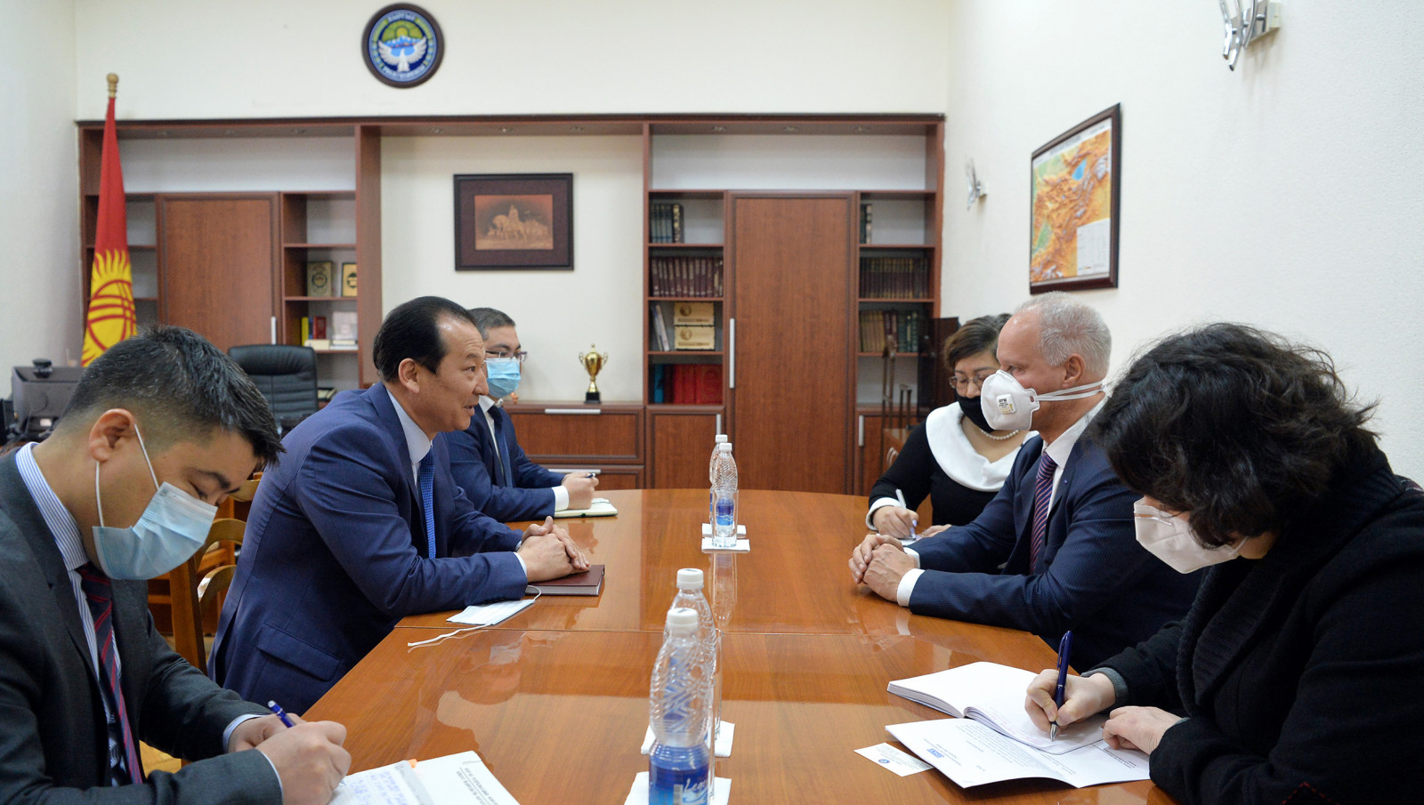 Кыргыз Республикасынын Өкмөтүнүн Аппарат Жетекчиси – Министр Бактыбек Аманбаев Европадагы коопсуздук жана кызматташтык боюнча уюмдун Бишкек шаарындагы Программалык кеңсесинин башчысы Пьер фон Аркс менен жолугушту.