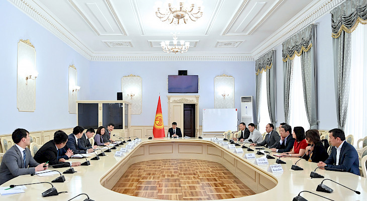Министрлер кабинетинин төрагасынын орун басары Бакыт Төрөбаев министрлер кабинетинин төрагасы Акылбек Жапаровдун тапшырмасы боюнча тамак-аш, кайра иштетүү өнөр жайы жана транспорт-логистика тармагында иштеген ишкерлер менен жолугушту.