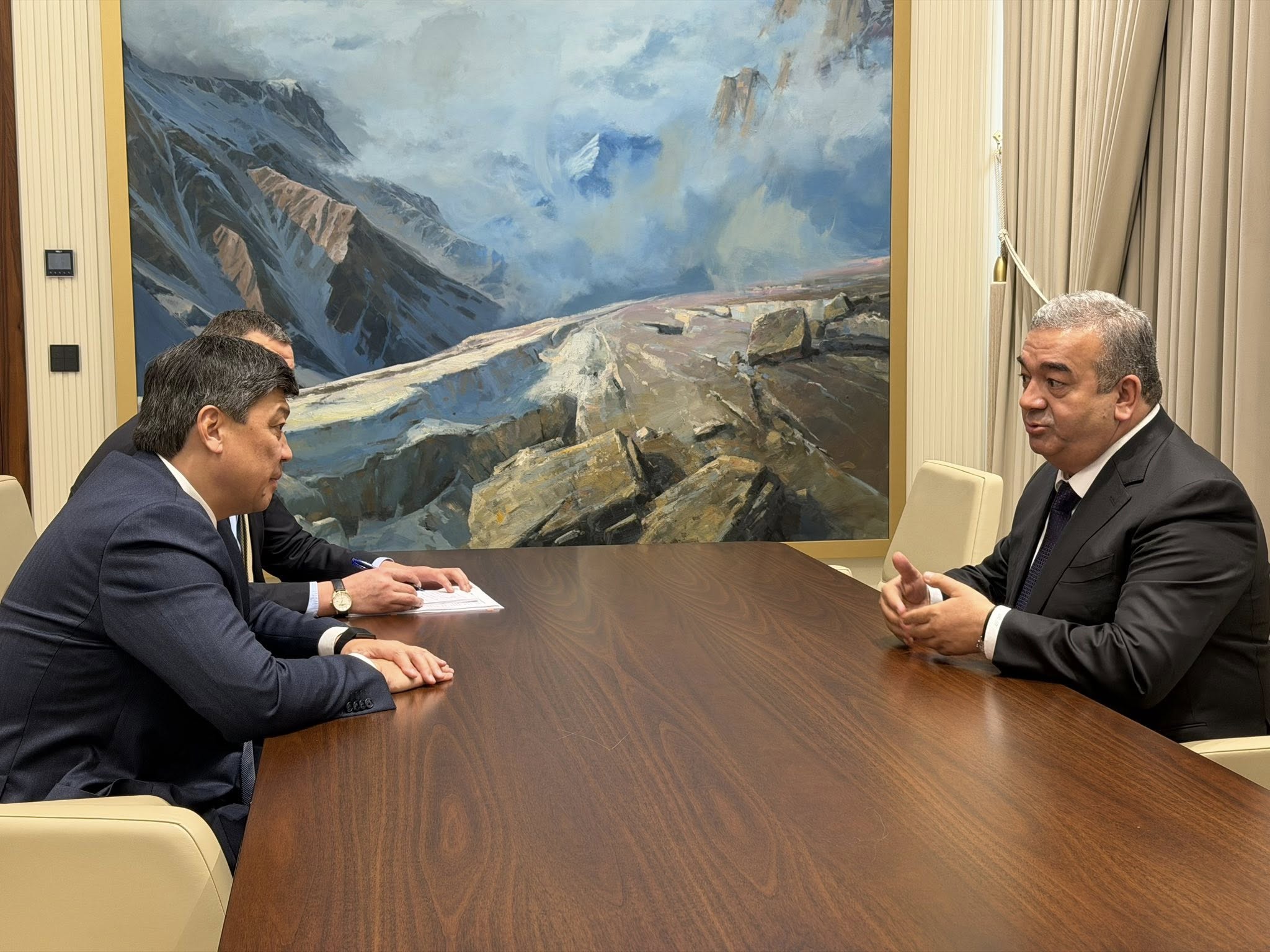 Министрлер Кабинетинин Төрагасынын орун басары – суу ресурстары, айыл чарба жана кайра иштетүү өнөр жайы министри Бакыт Төрөбаев Тажикстан Республикасынын айыл чарба министри Курбон Хакимзода менен жумушчу жолугушуу өткөрдү.