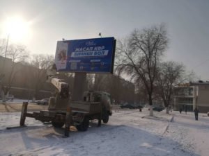 Ошондой эле, ушуга окшош баннерлер Казакстандын жана Өзбекстандын шаарларына орнотулганы белгилүү.