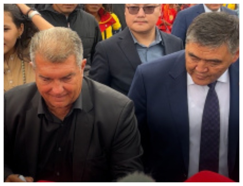 "Барселона" футбол клубунун жетекчиси Жоан Лапорта менен футболчу Эдгар Давидс Кыргызстанга келди.