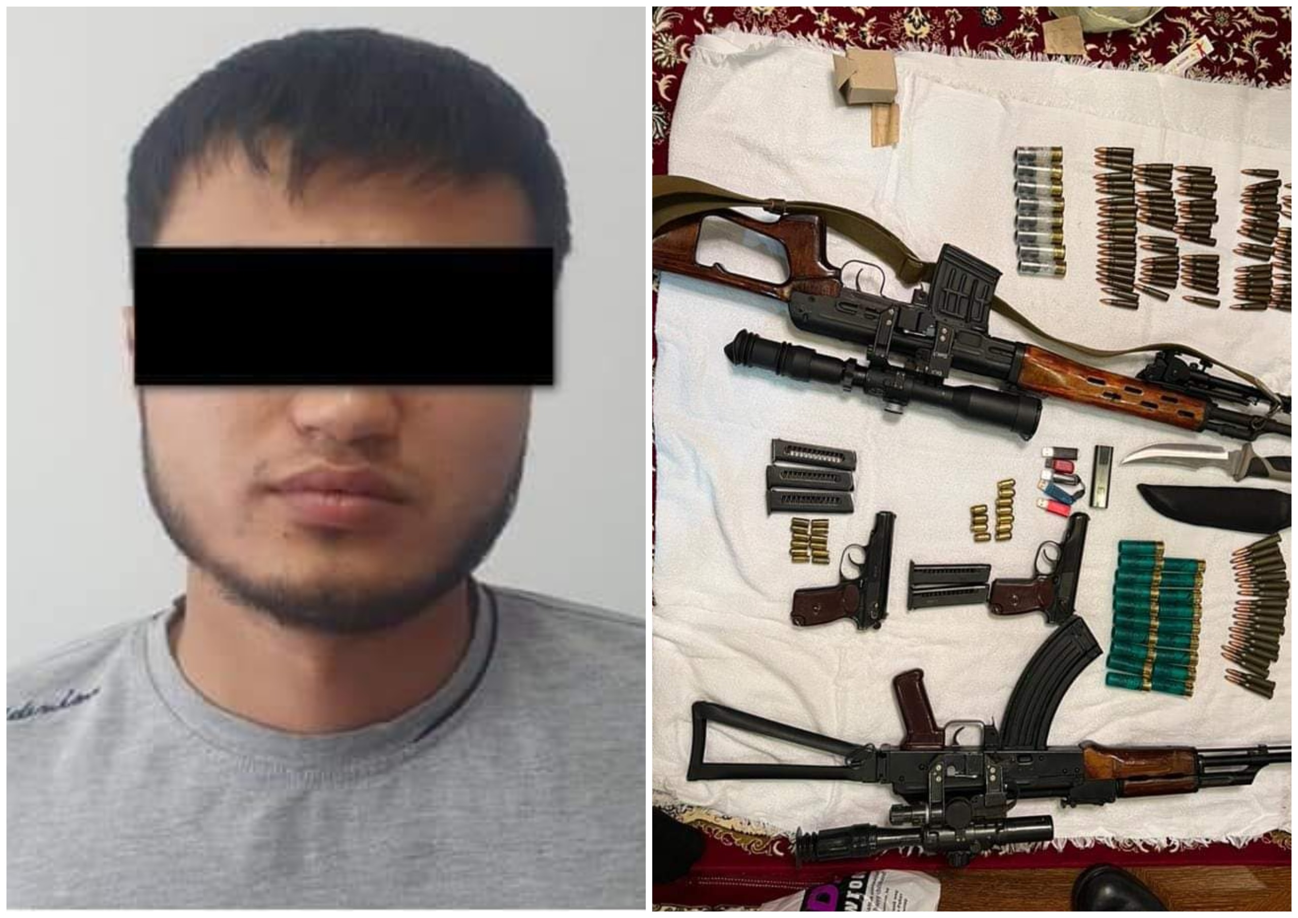 Ошондой эле, тергөө иш-чараларынын жүрүшүндө шектүүнүн жашаган жеринен ок атуучу куралдар: снайпердик ок атуучу куралы, «Сайга» үлгүсүндөгү ок атуучу куралы, эки тапанча, 7,62 калибрдеги 100дөн ашык октору, ошондой эле башка ок атуучу куралга таандык октор жана бычак табылып алынган.