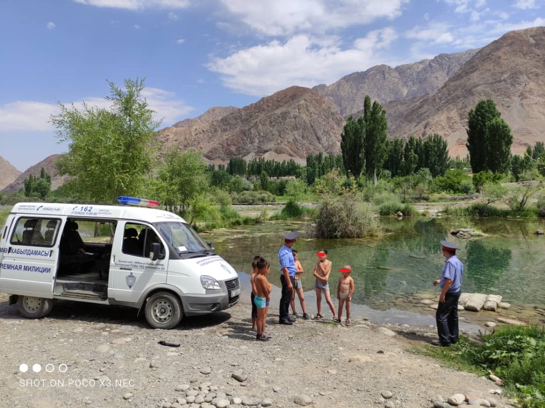 Баткен районунун Ак-Сай айыл аймагында Көк-Таш айылдык милиция бөлүмчөсүнүн кызматкерлери милициянын көчмө кабылдамасы менен жаш өспүрүмдөрдүн коопсуздугун сактоо максатында Ак-Суу дарыясынын жээгинде кооптуу болгон көлмөлөргө түшүп, сууга чөгүү фактыларын алдын алуу