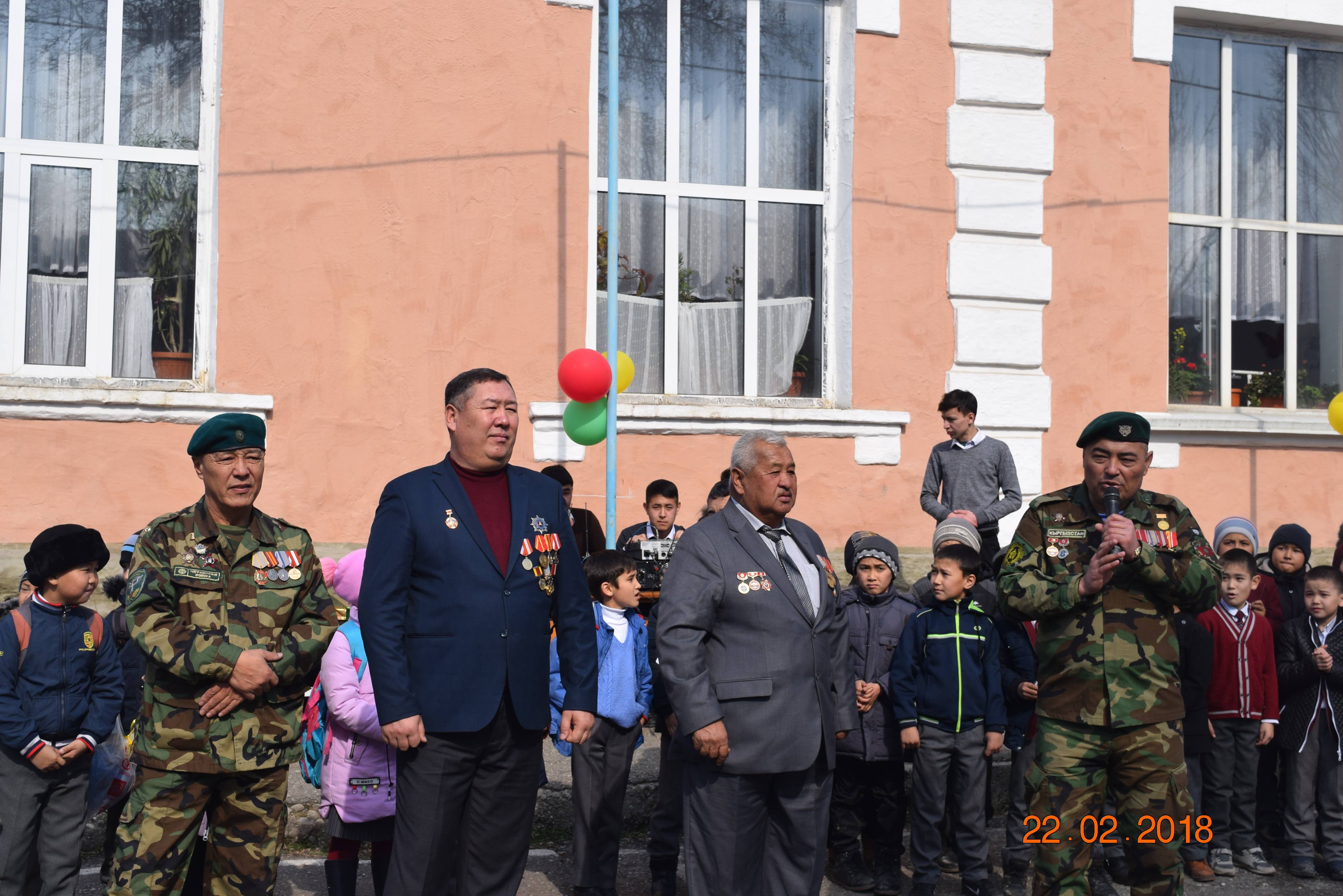 Жалал-Абад областындагы Баткен согушунун ардагерлери мектеп окуучулары арасында патриоттук сезимге тарбиялоо иштерин баштап, 100дөн ашуун ардагер дээрлик күн сайын жолугушууларды өткөрүшүүдө. Жалал-Абад шаарындагы №1 мектеп-гимназиясынын окуучулары менен болгон кезектеги жолугушуу Мекенди коргоочулар күнүнө дал келип, кечээки жоокерлер аларга Мекенди кантип сүйүү керектигин айтышты.