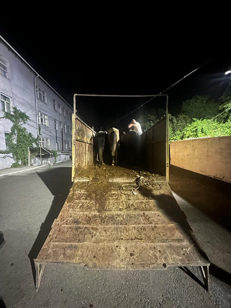 Маалыматка ылайык, Кызыл-Кыя шаарынын Кадамжай району менен чектешкен Кара-Козу айылындагы талаадан 29-июлдан 30-июлга караган түнү 3 баш жылкы, 3 баш бодо малды белгисиз эки жаран "Мерседес Бенц ГИГАНТ" автоунаасына жүктөп алып кетип жаткан жеринен кармалды.