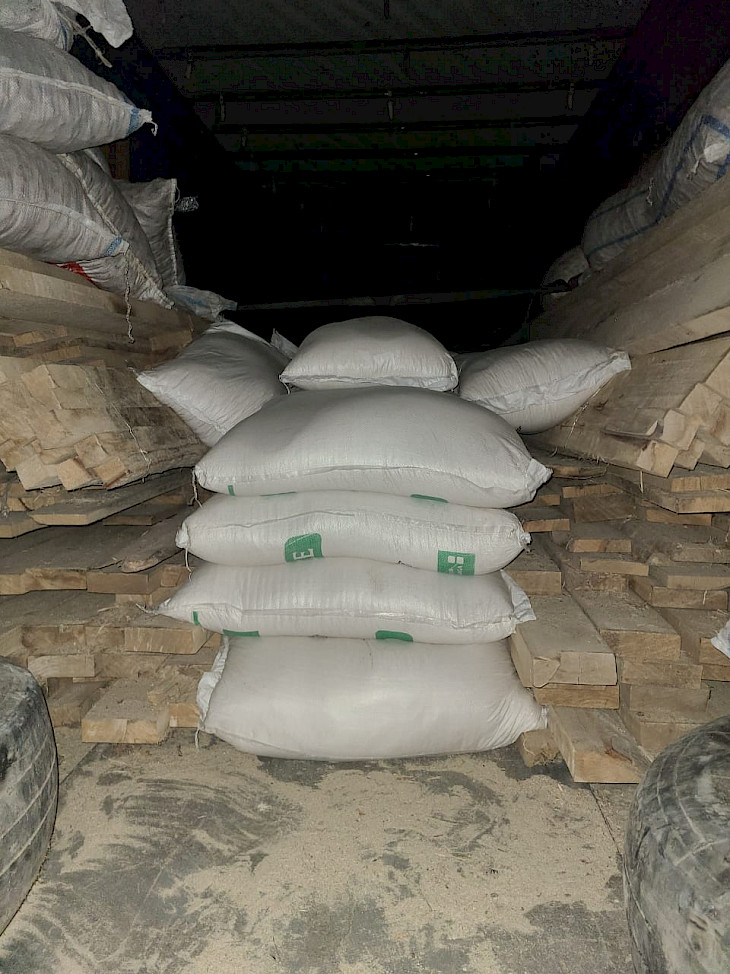 Унаанын жүк бөлүгүн бажылык текшерүүдө Өзбекстандан чыккан, жалпы салмагы 2500 кг түзгөң күрүч табылган. Мыйзамсыз ташылып келген товарлардын орточо базар баасы 194 миң 450 сомду түздү.