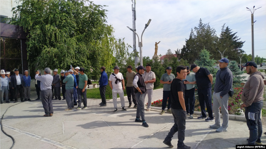 Баткен шаарында облустук администрациянын алдында кыргыз-тажик чек арасындагы куралдуу кагылышта кыйраган үйлөрдү курган жумушчулар эмгек акысы берилбей жаткандыгын айтышып нааразылыкка чыгышты. Алар Достук айылын калыбына келтирген өзбекстандык ишкер 7 миллион сомдон ашык акчаны алып качып кеткенин айтып, аны менен келишим кандай шартта түзүлгөнү тууралуу түшүндүрмө берилишин талап кылышты.