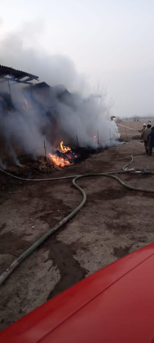 «Тилсиз жоонун кесепетинен сарайдын чатыры толугу менен күйүп кеткен. Өрттүн жалпы аянты 80 чарчы метрди түзүп, 16 даана шифер, 14 даана темир лист, 500 таңгакталган чөп чыгымга учураган»,-деп айтылат маалыматта.