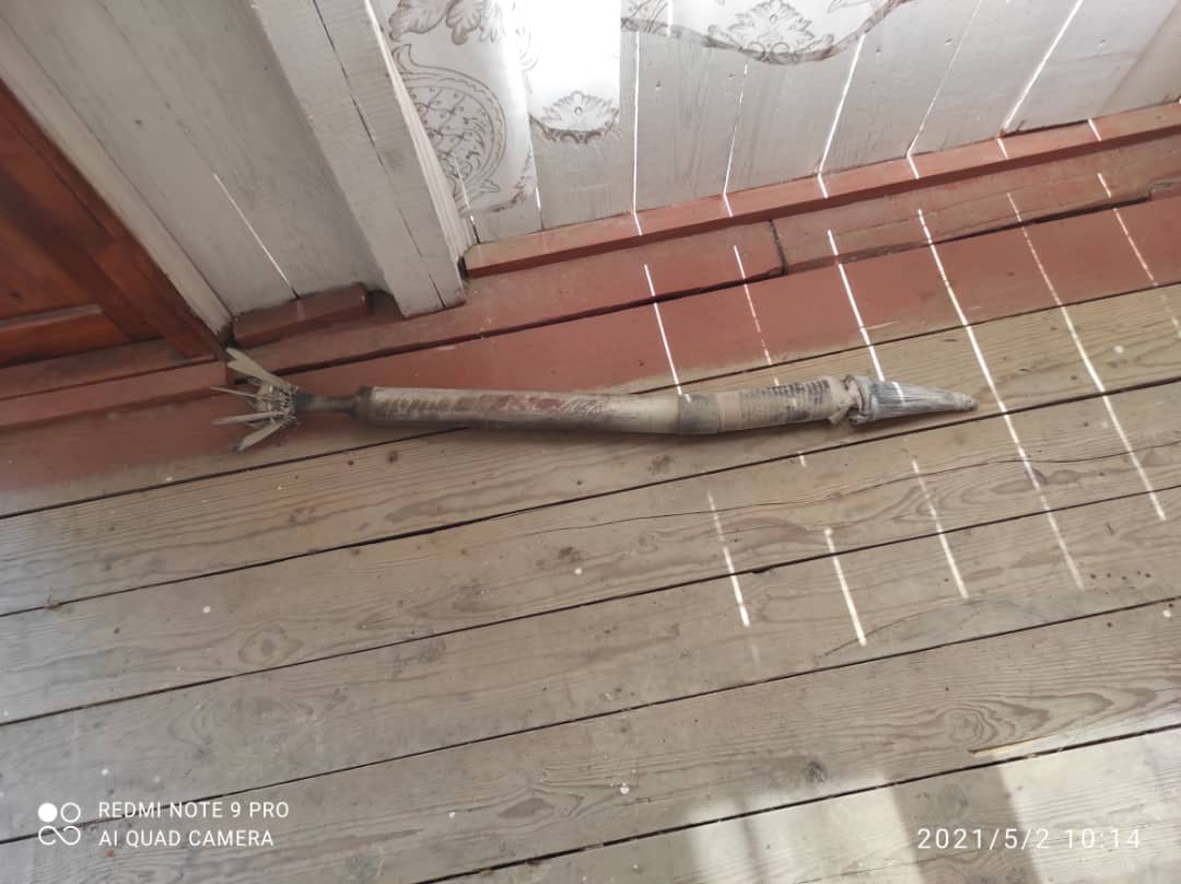 Бүгүн, 2-майда 2021-жылдын 29-апрелинде тажик аскер кызматчылары “Ми-24” вертолету менен Баткен облусунун Баткен районунун Торт-Көчө жана Чыр-Дөбө жерлерине абадан чабуул жасаган учурда Актатыр айыл башкармалыгынын Ортобоз айылынын тургунунун үйүнө түшкөн авиациялык ракета табылган.
