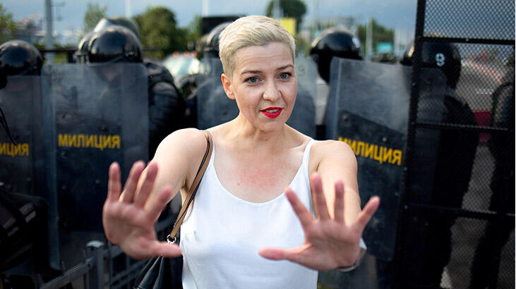 Мария Колесникова, өкмөткө каршы митингдерди уюштурган 3 айымдын бирөөсү. Өлкөдөн чыкпоо үчүн паспортун айрып салган Колесникова нааразычылык акцияларын уюштургандыгы үчүн “коопсуздук мыйзамы боюнча” сот жообуна тартылат.