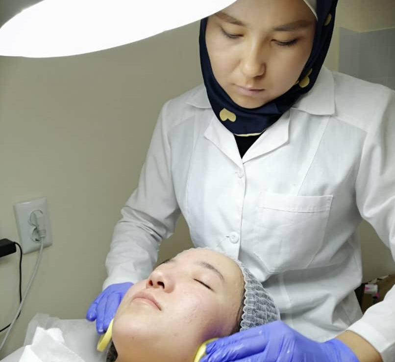 -- Косметологиялык процедуралар бет тазалоодон баштап, бырыштарды жазуу, безеткилерди дарылоо, пигменттик тактарды агартуу, кыздардын беттерине, келбетине жакшы, таза, табигый келбет тартуулоо. Биздин бетибизде майда тешикчелер бар, алар бетибизди майланыштырыш үчүн бет майды бөлүп чыгат. Эгерде бетибизге декоративдүү косметика же тоналдык крем сүйкөсөк, тешикчелер майды бөлүп чыгаралбай калат. Ал май толо берет, анан ал жерде тыгын пайда болот. Тыгын пайда болгондон кийин ал жер ачыйт, кычыйт, а эртеси безетки болуп чыга баштайт. Бет тазалоо, бетти укалоо, классикалык укалоо жана лифтинг деп коёт, беттин булчуңдарын жакшыртыш үчүн укалоолор бар, аппараттык косметологиялар бар жана бетке ийне аркылуу каражатты териге киргизүү менен дарылоо бар. Биздин терибиз акылдуу орган болуп эсептелинет. Себеби, бетке кандай нерсени койсо да, баардык нерсени кабыл алып, өзүнө сиңире бербейт. Ошондуктан биздин органга ийне терапиянын жолу жакшы жардам берет. Себеби, мындай ыкмада медициналык каражатты түздөн-түз теринин керектүү клеткасына киргизүүгө мүмкүнчүлүк болот жана анын жыйынтыгы дагы көпкө күттүрбөй, оң таасирин берет.