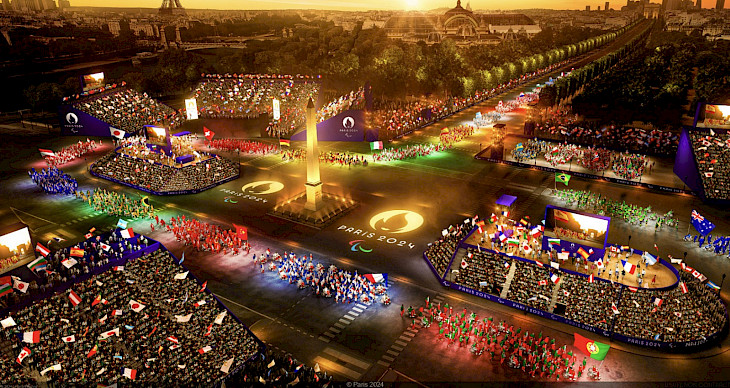 Паралимпиаданын ачылыш салтанаты Олимпиада оюндарындай эле стадиондо болбойт, бул ирет параспортчулар Елисей талаалары бульварын бойлой басып өтүшөт. Муну менен Франциянын маданий жана тарыхый мурастарына басым жасоого маани берилүүдө. 65 миңдей көрүүчү катышуучуларды салтанаттуу түрдө тосуп алаышат.