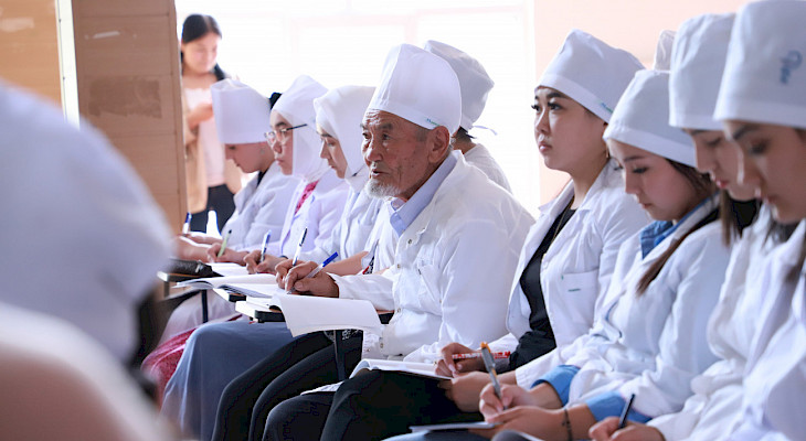 "27 жылдан бери ушул тармакта окутуучу болуп иштесем, биринчи жолу практикамда улуу жаштагы ата студентим болуп жатат. Бир чети атаны көрүп сүйүнсөм, бир чети суктандым. Биз буга чейин мындай көрүнүштү чет өлкөдөн гана көрсөк, бизге да келип жатканы мени аябай кубандырды" - дейт органикалык химия предметинен сабак берген окутуучусу Махира Мирзаева.