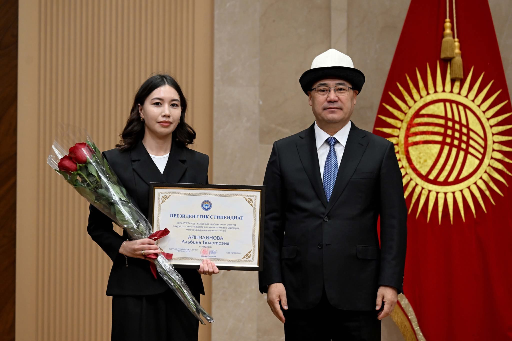 “Ынтымак Ордодо” өткөн салтанатта Президент Садыр Жапаров жогорку окуу жайлардын мыкты студенттерине президенттик стипендия тапшырды. Бул сыймыктуу сыйлыкка өлкөнүн булуң-бурчунан тандалып алынган 90 студент ээ болду. Ар бирине президенттин мактоо баракчасы жана 60 миң сом өлчөмүндөгү стипендия ыйгарылды.