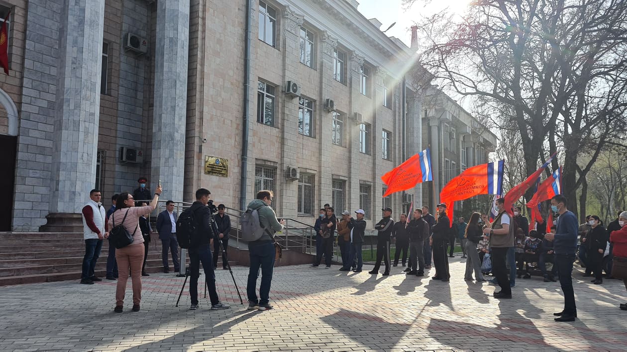 Бишкекте шайлоонун жыйынтыгына нааразы партиялардын өкүлдөрү Борбордук шайлоо комиссиясынын алдына митингге чыгышты.