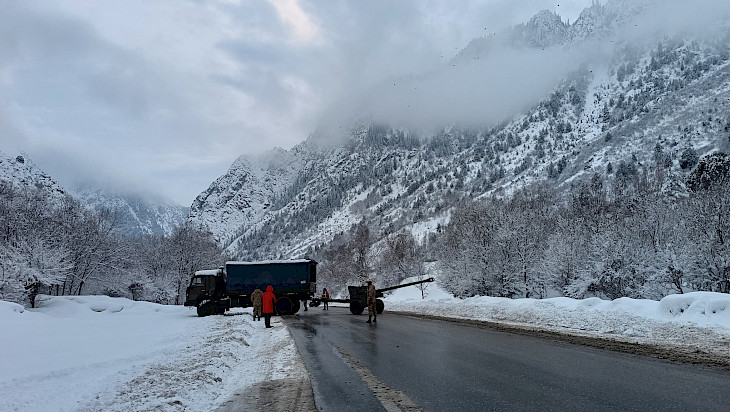 Бишкек– Ош унаа жолунда кар көчкүнү мажбурлап түшүрүү иши жүрүүдө.