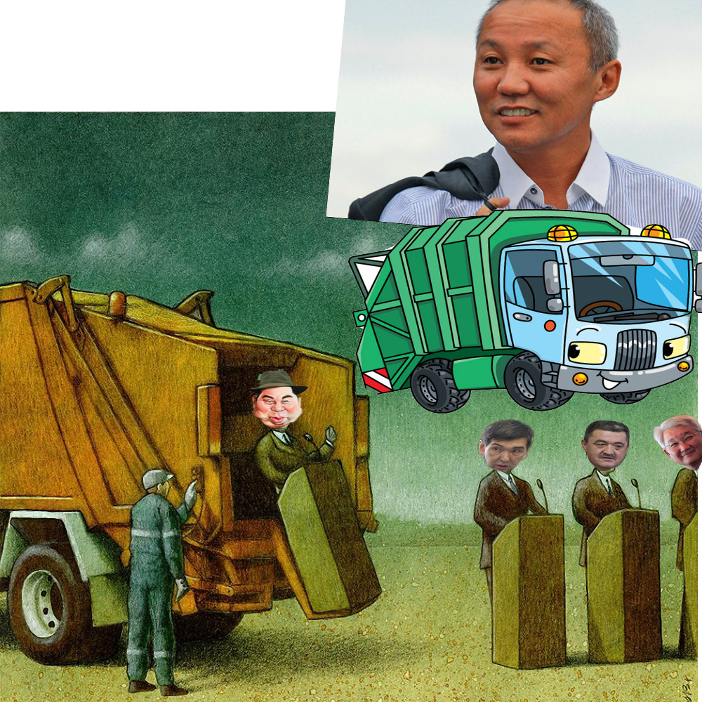 2008-жылы Нариман Түлеев Бишкекке мэр болуп келгенде Бишкек мэринде Акаевден калган төмөнкүдөй коррупциялык схемалар болгон. Бишкек шаарында төрт комбинат бар. Алардын ар биринде 45-50 дөн таштанды ташыган машиналар балансында турат. Ар бири машина күнүнө 40, 60 литрден солярка корото турган. Мыйзам боюнча ал машиналар күнүнө үч рейс жасаш керек эле. Бирок мэр болуп кимиси келбесин, баягы эле таштанды ызы-чуусу басылчу эмес. “Таштандыны жеңиш мүмкүн эмес экен” деген мэрди да көрдүк. Кантип жеңет эле, эгер келген мэр өзү күнүнө 10 миң доллардан «сол чөнтөккө» солоп жатса?