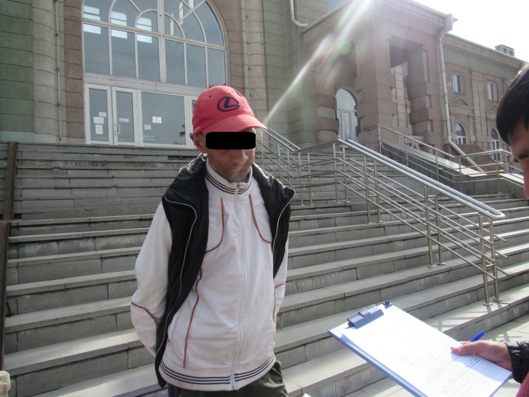 Ал 41 жаштагы Бишкек шаарынын тургуну П.К. болгон. Ыкчам-иликтөө иш-чаралары жүргүзүлүп жаткан учурда, ал адам “Бишкек-2” темир жол станциясынын имаратынын жанында болуп, милиция кызматкерлери менен сүйлөшүүдө өзүн шектүү алып жүргөн. Ушул себептен, анын жеке буюмдарын текшерүү чечими кабыл алынып, анын жүрүшүндө баштыкка оролгон жапайы кара