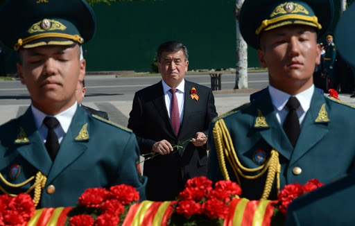 Кыргыз Республикасынын Президенти Сооронбай Жээнбеков Өчпөс отко гүл коюп, Улуу Ата Мекендик согушта курман болгондорду бир мүнөттүк аза күтүү менен эскерди.