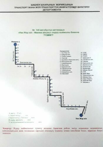 Бишкек шаарында № 145 автобустун жана № 192 кичи маршруттук таксисинин каттам схемасынын айрым бөлүгү өзгөрдү. Бул тууралуу мэриянын басма сөз кызматы билдирди.