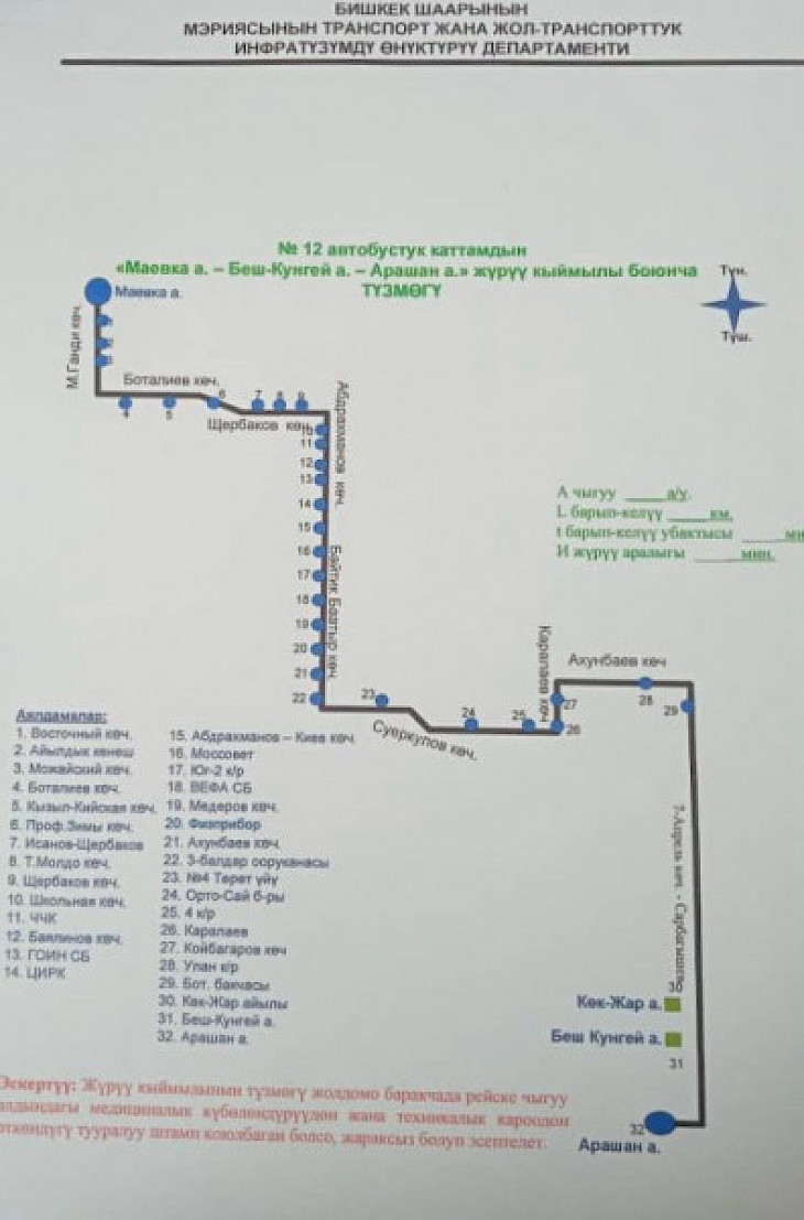 Бишкекте 7-марттан тартып «ЭКО жүргүнчүлөрдү ташуу» ЖЧКсы тейлеген №12 автобус каттамынын кыймыл схемасы жарым-жартылай өзгөрөт. Бул тууралуу муниципалитеттен билдиришти.