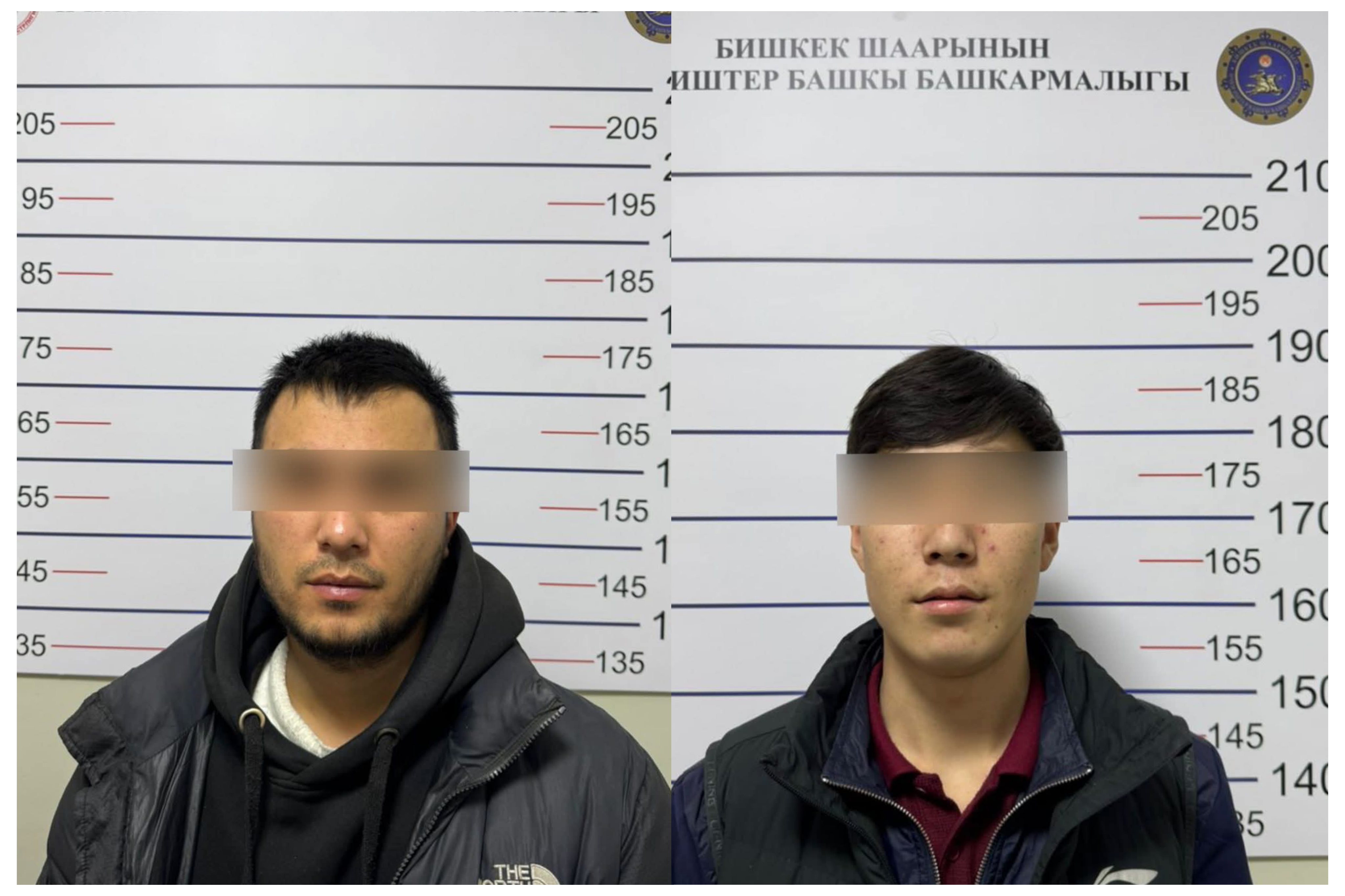 Бишкек шаарынын ИИББнын Кылмыш иликтөө башкармалыгынын кызматкерлери тарабынан жүргүзүлгөн ыкчам-издөө жана ыкчам-техникалык иш-чаралардын жүрүшүндө шектүүлөрдүн өздүгү жана жүргөн жери аныкталды: Т. Ж., 2002-жылы туулган жана К. Э., 2006-жылы туулган. Көрсөтүлгөн шектүүлөр Тергөө кызматына жеткирилип, Кыргыз Республикасынын ЖПКсынын 96 жана 97-беренелеринин негизинде Бишкек шаарынын ИИББнын убактылуу кармоочу жайына киргизилди.