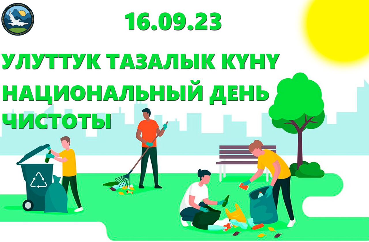 16-сентябрда Кыргыз Республикасынын Жаратылыш ресурстары, экология жана техникалдык кɵзɵмɵл министрлиги Кыргыз Республикасынын Министрлер Кабинетинин жетекчилиги астында республикабызда айлана-чɵйрɵнү тазалоо боюнча масштабдуу экологиялык акцияны ɵткөрɵт. Бул тууралуу аталган ведомстводон билдиришти.