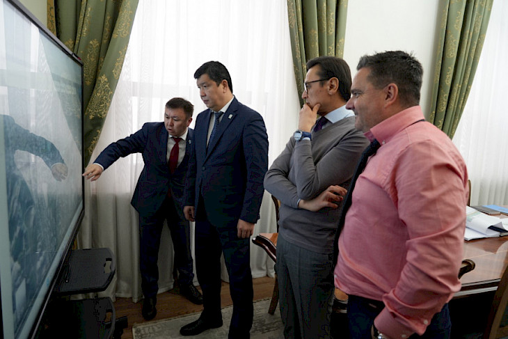 Бишкек мэри Айбек Жунушалиев асма жолдорду куруу боюнча эл аралык эксперт Стефано Николусси Росси жана «Bartholet Maschinenbau AG» компаниясынын Кыргызстандагы өкүлү Эдуард Кубатов менен жолугушту.