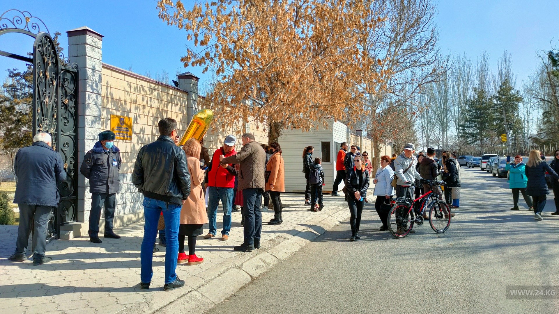 Тынчтык митингине 20га жакын адам чыкты. Алар колдоруна «Украинага даңк!», «Согушка жол жок» деген жазуулары бар плакаттарды кармап турушат.